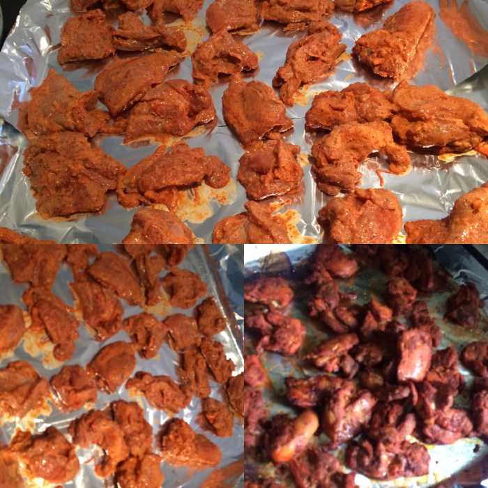 This is the first of one of those purchases .. some stupidly low priced chicken thigh fillets. Marinated in tandoori Shan family spices, Turkish wild garlic yoghurt and left to get its groove on for at least 24hrs..