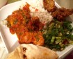 Tikka popped on.. a some tatziki, bought salad leaves dressed in french dressing, a few Turkish marinated olives.. and this neat Spanish tomatoes with shallot, Japanese vinegar and pomegranate sauce..