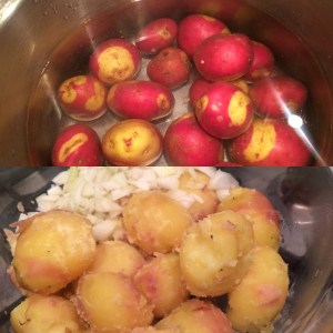 Apache potatoes . Love em.. boiled and the skins slipped off … simple onion a little dried thyme..