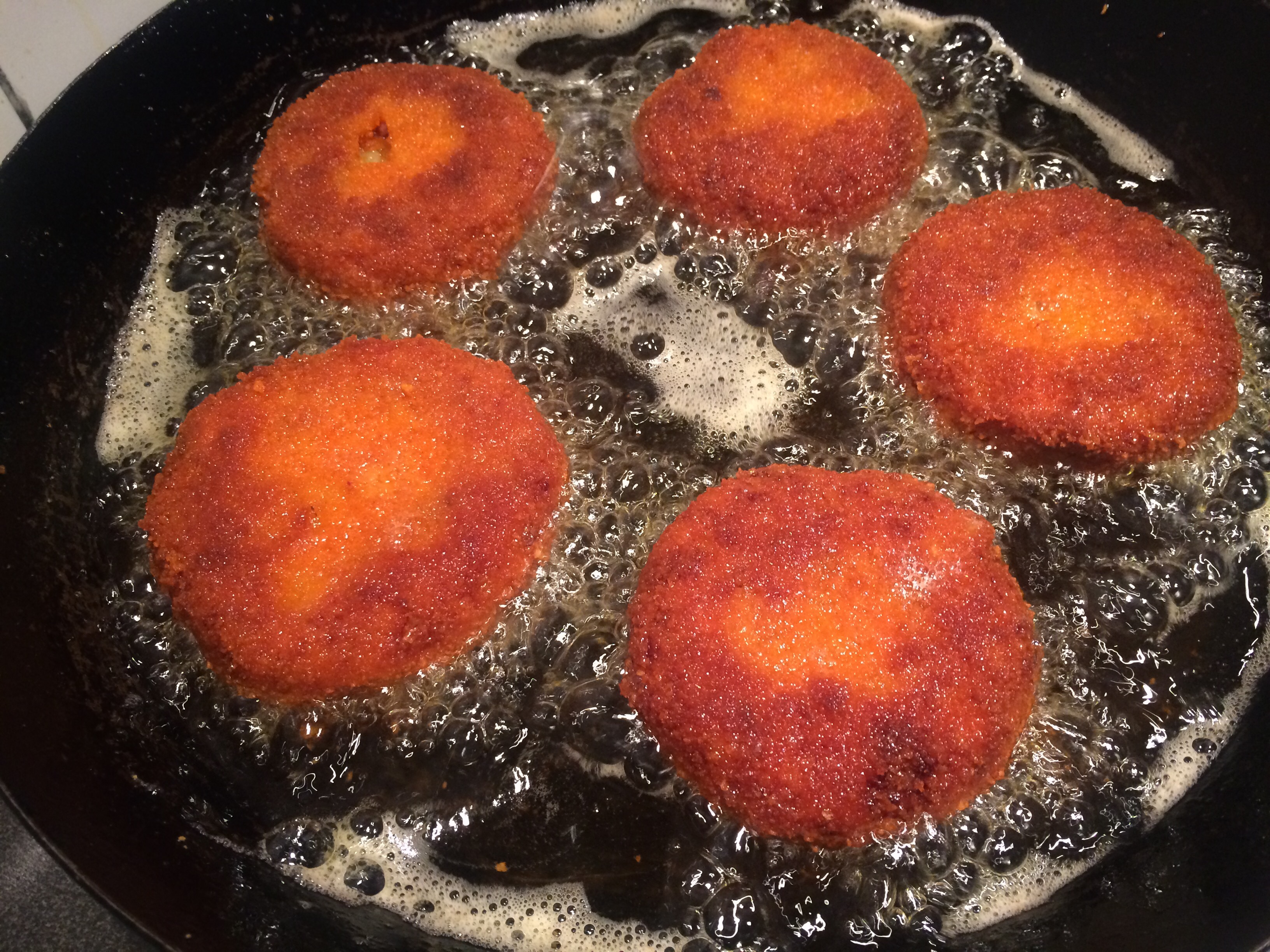 Into the iron pan with a slosh of Mrs middletons straight up oil..