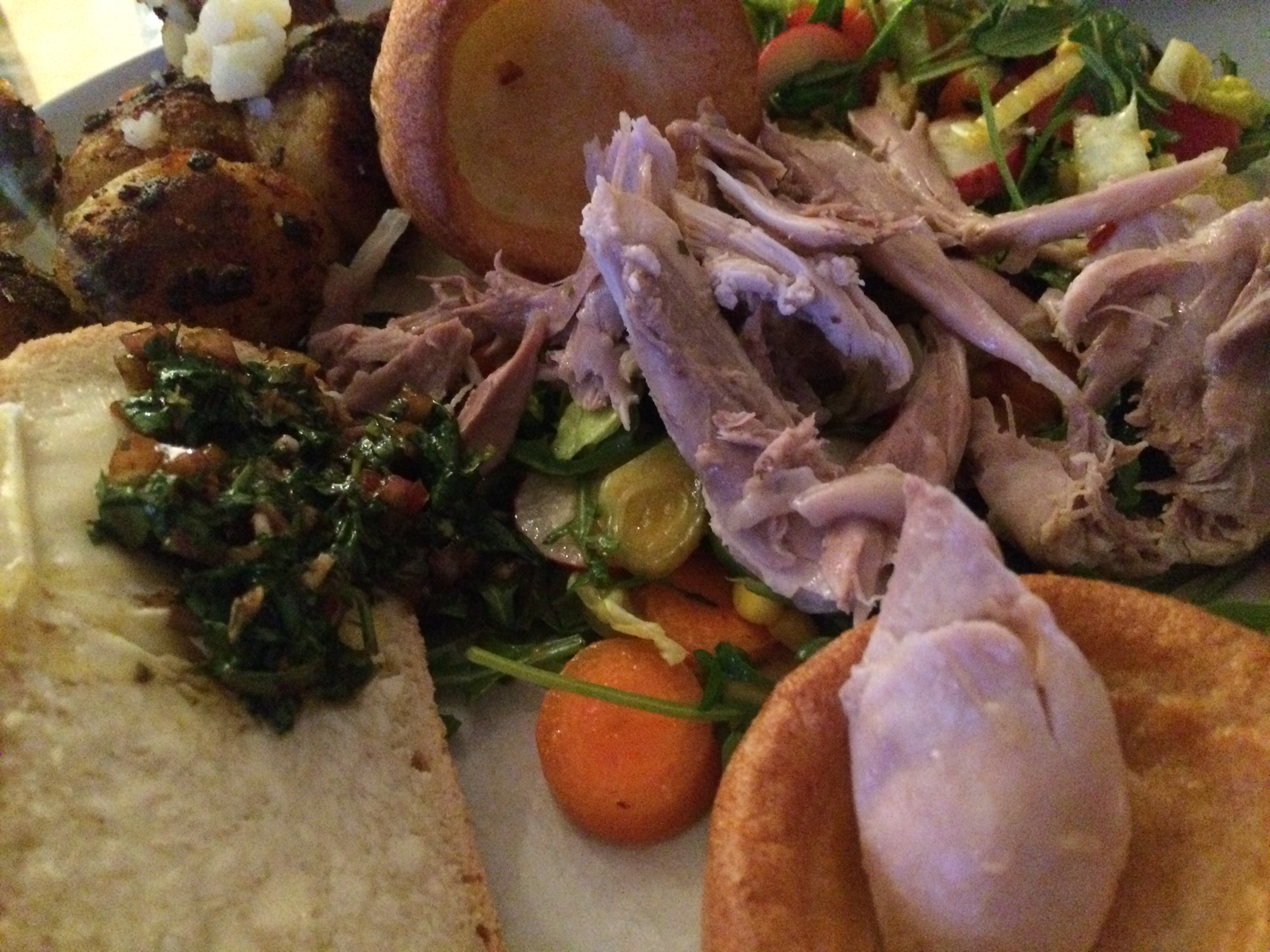 Yorkshire puds.. chimichurri .. bread and french butter and veggies..