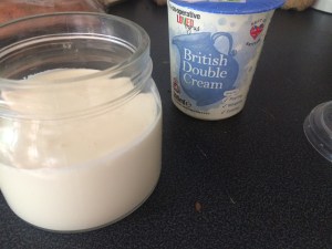 Now it seems strange yet you need to leave it out all night.. Outta the fridge.. This was a reduced number from the coop.. It need to be the heaviest cream you can find..