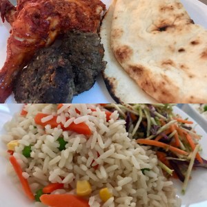 Chicken curry, veal kofta curry, mushroom and pea curry, carrot and brussel sprout curry, lamb kebabs, ghee buttered rice, yoghurt breads…