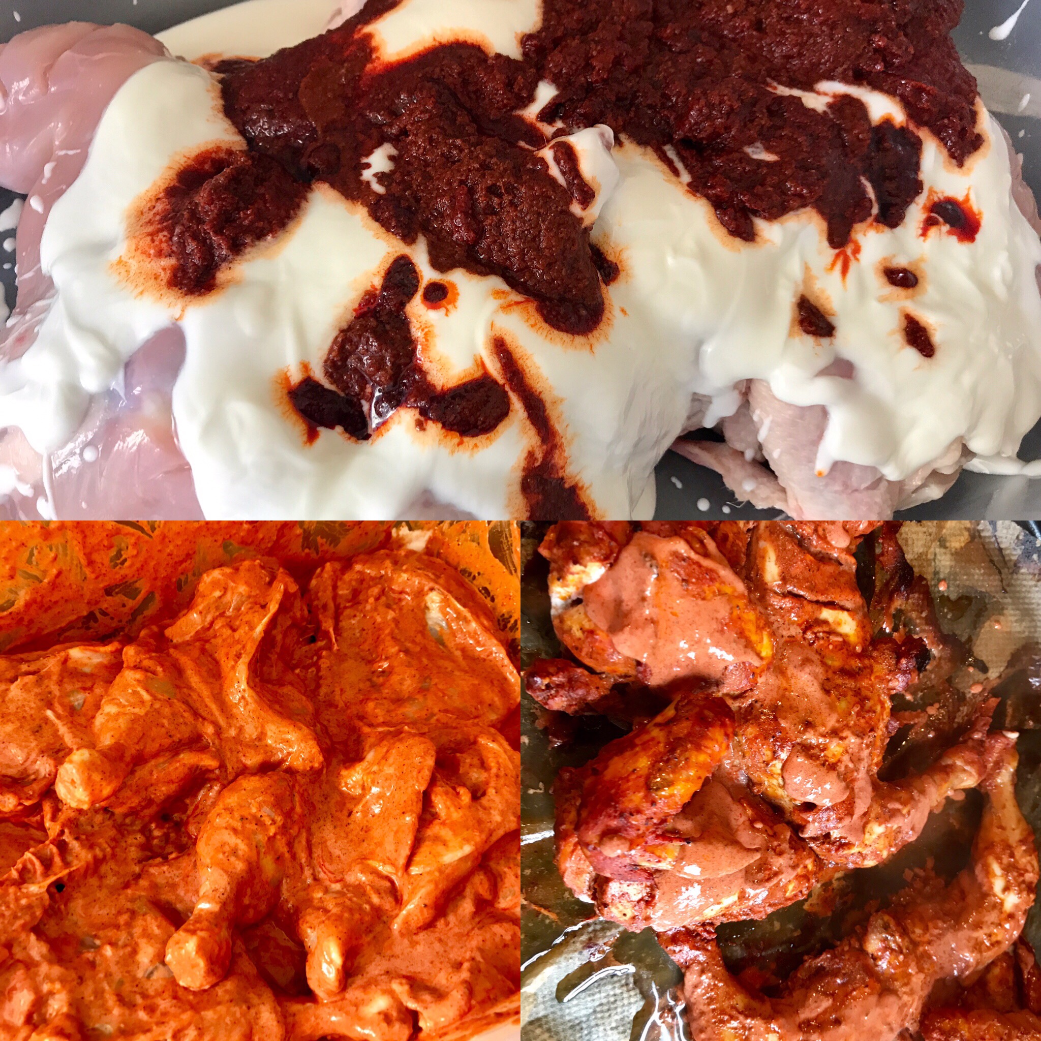 And then these really groovy baby chickens.. butterflied.. again using a spice mix (non smuggled ..).. smothering them in natural yoghurt..pulling the skin off them and slashing them up like a weird b movie..