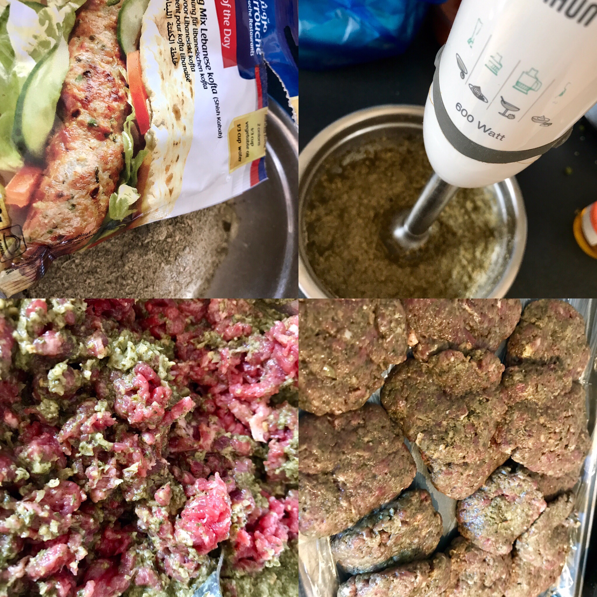 first these kofta type things.. using beef here.. with a smuggled spice packet.. the spice mix stick blended with oil and white fresh onions..