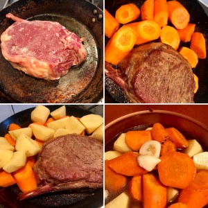 Adding carrots .. and potatoes .. and some big fat Peruvian garlic.. some fresh snipped garden rosemary .. we are so lucky to have a massive rosemary bush.. Mrs Fitz chopped half of it down as it was taking over and it’s still massive! And it all started from a store bought pot!
