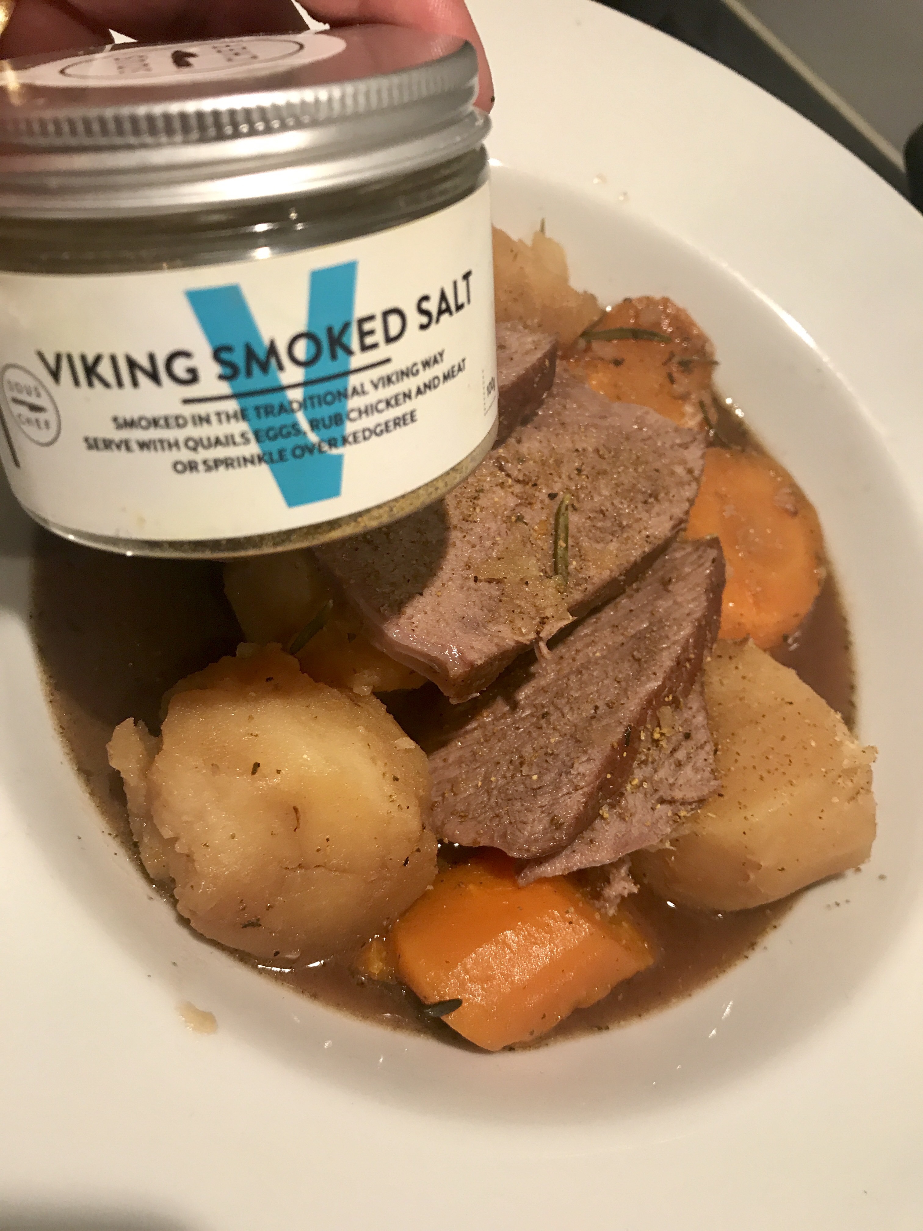 Just lifting out the cow wing and slicing it up.. a good hit of Viking smoked salt..