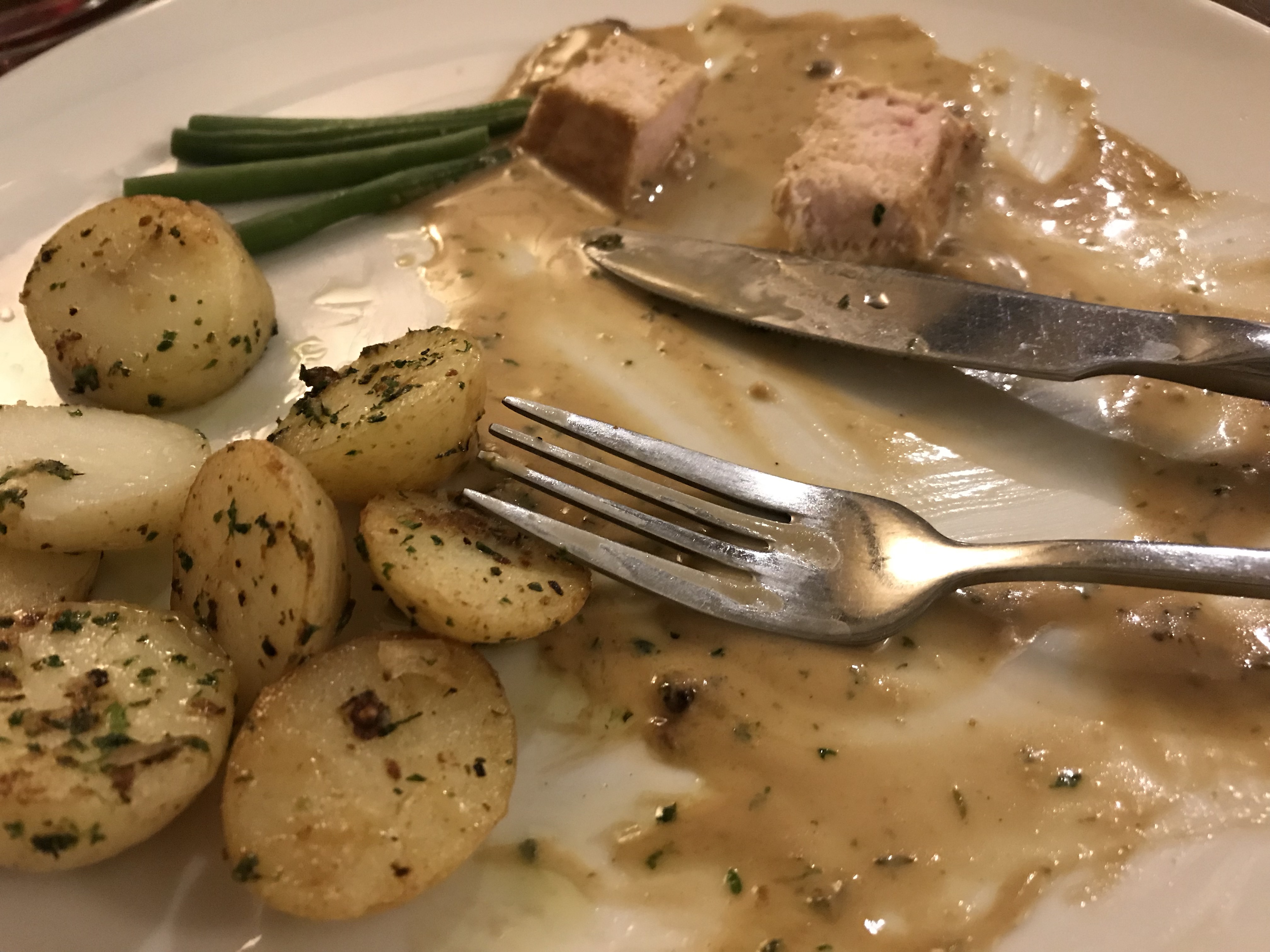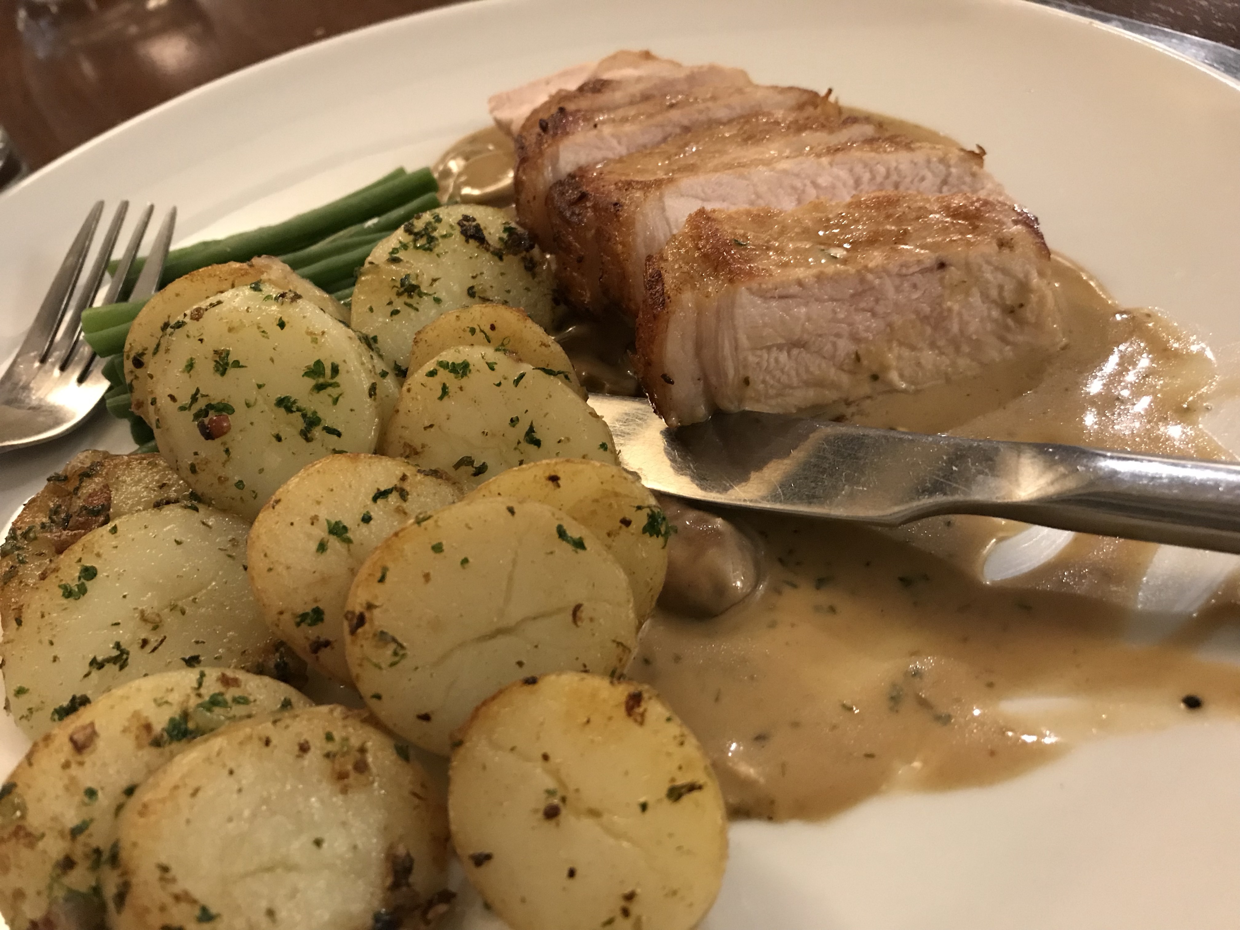 With sauté herbed potatoes and green beans and a Germanic mustard style mushroom sauce .. what did it look like ?
