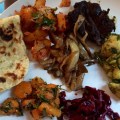 Chicken curry, veal kofta curry, mushroom and pea curry, carrot and brussel sprout curry, lamb kebabs, ghee buttered rice, yoghurt breads…